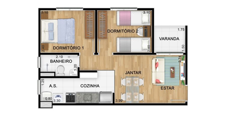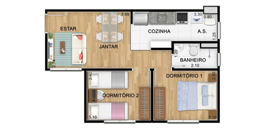 - Área Privativa: 42 m²