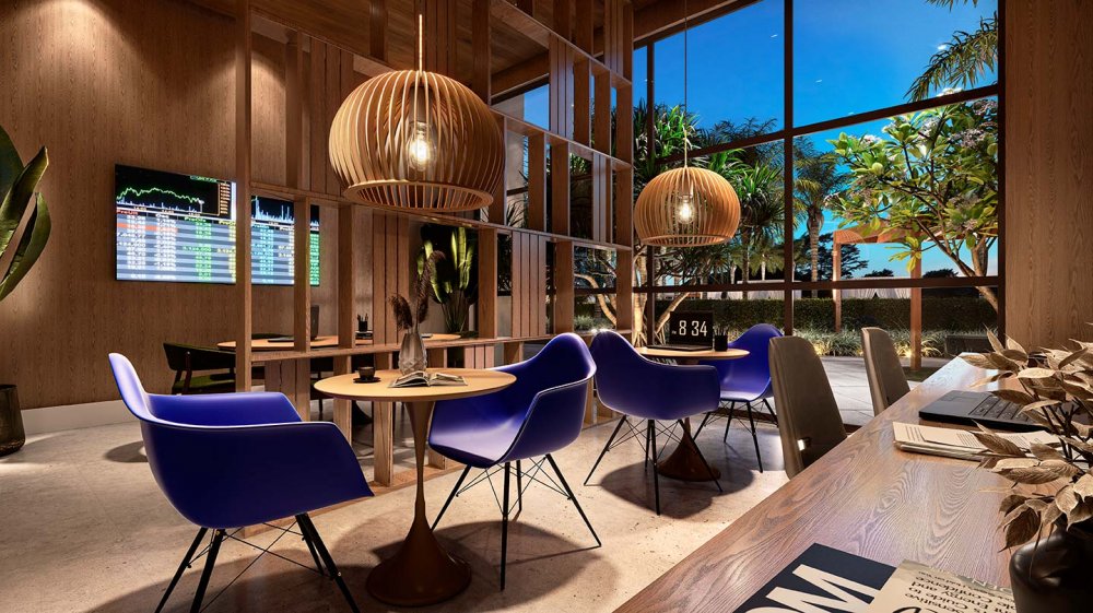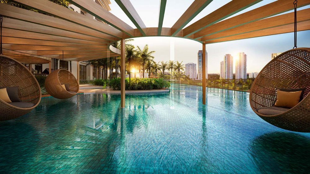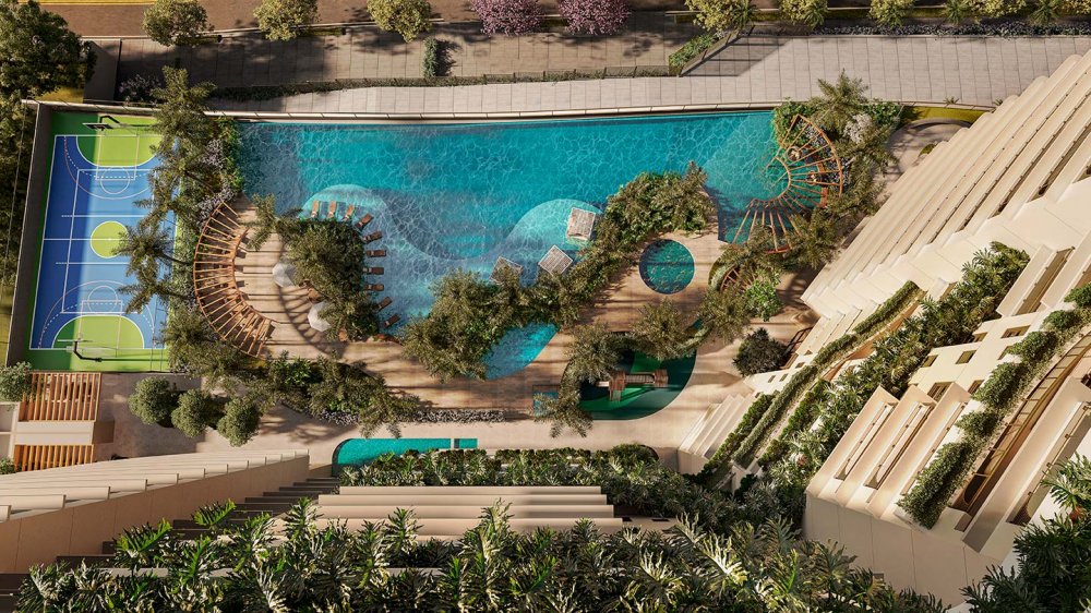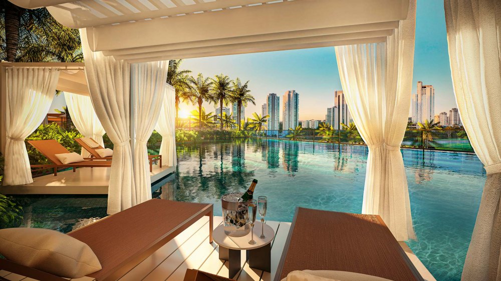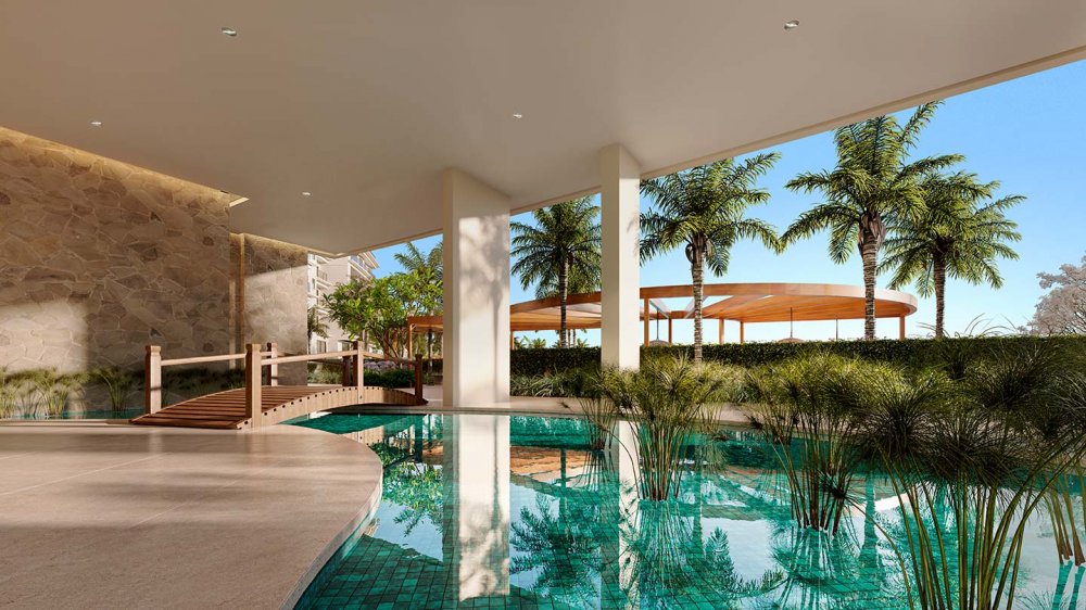 /Vestiários / Coworking / Playground / Piscina infantil / Piscina com descanso / Solarium / Bangalôs / Piscina adulto com