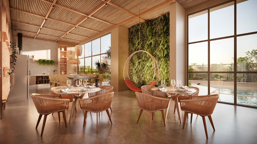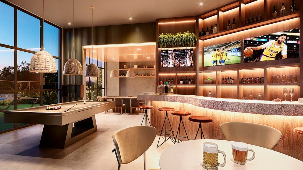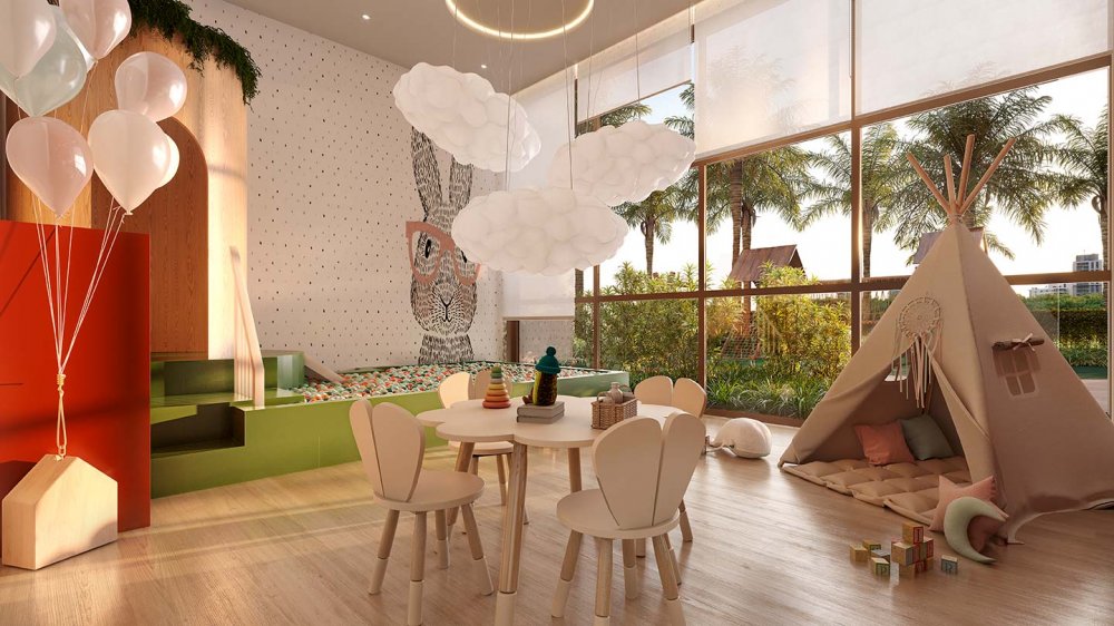 esportiva / Piscina coberta / Espaço games / Brinquedoteca / Espaço para mini mercado com máquina de gelo / Pet care
