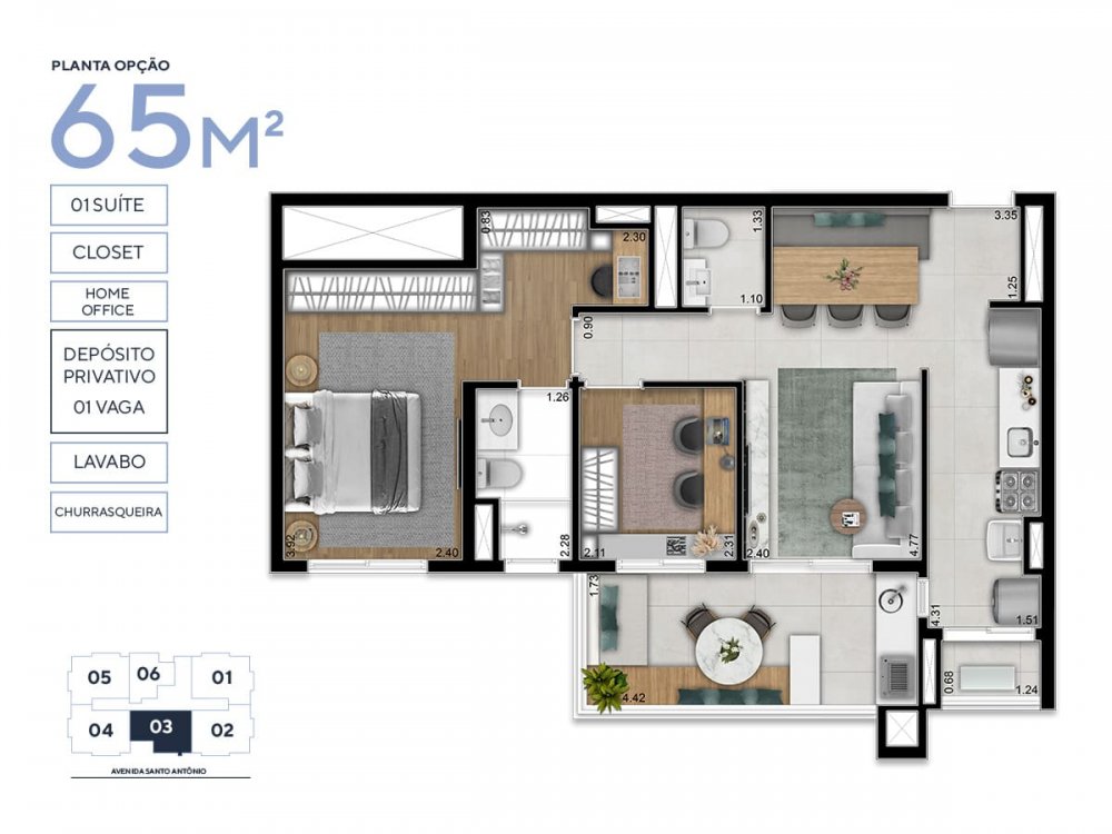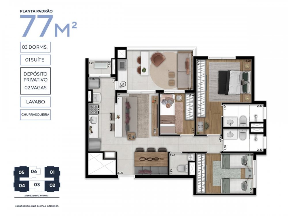• Área Privativa: 77,33 m²