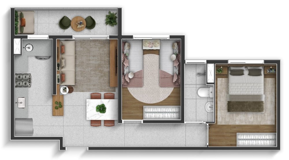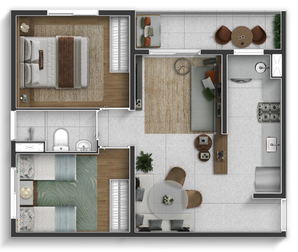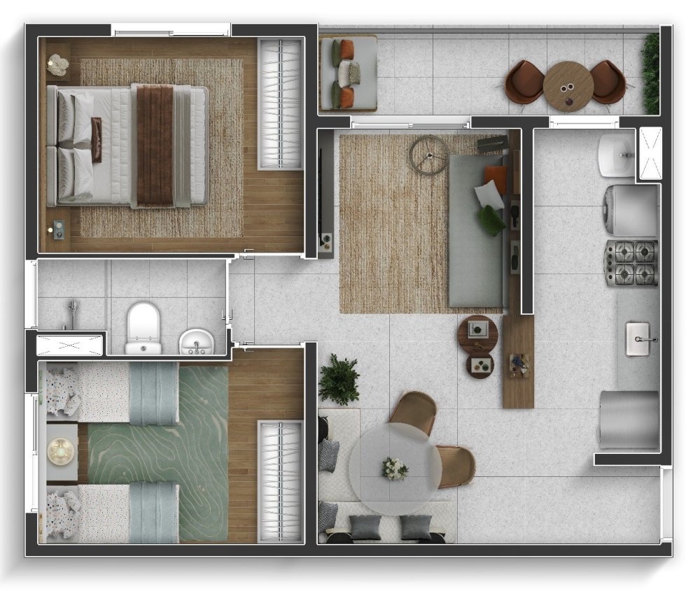 - Área Privativa: 47,25 m²