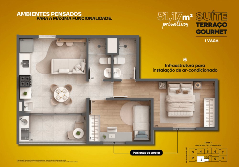 - Área Privativa: 32,89 m²