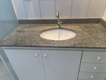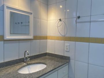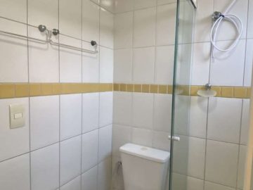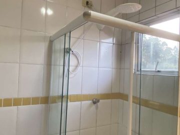 -Banheiro social com box de vidro temperado, chuveiro elétrico e gabinete