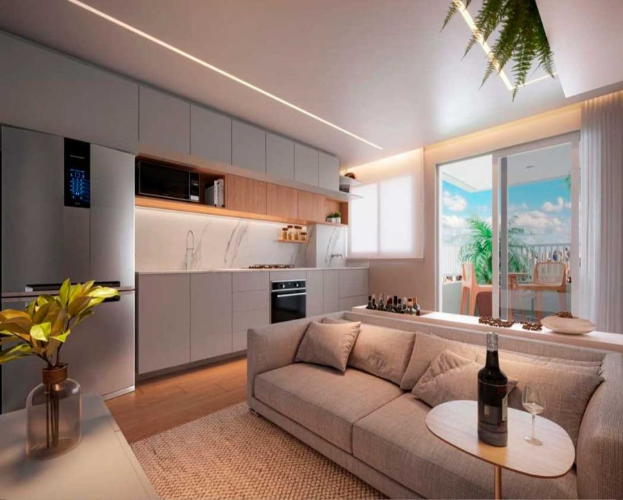 Desfrute de 02 dormitórios aconchegantes, 1 banheiro moderno, sala convidativa e cozinha americana, perfeita para integrar ambientes e momentos. Além disso, conte com 1 vaga de garagem para sua comodidade.