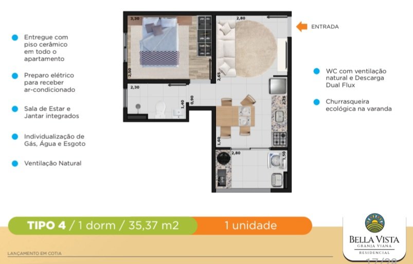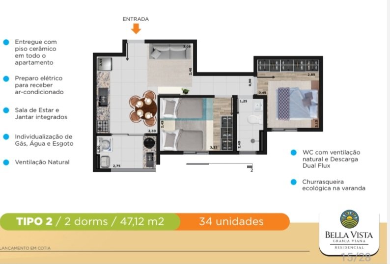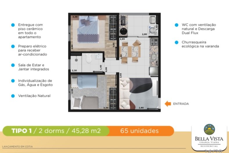 Apto Venda-Granja Cotia 2 Dormitório BELLA VISTA RESIDENCIAL